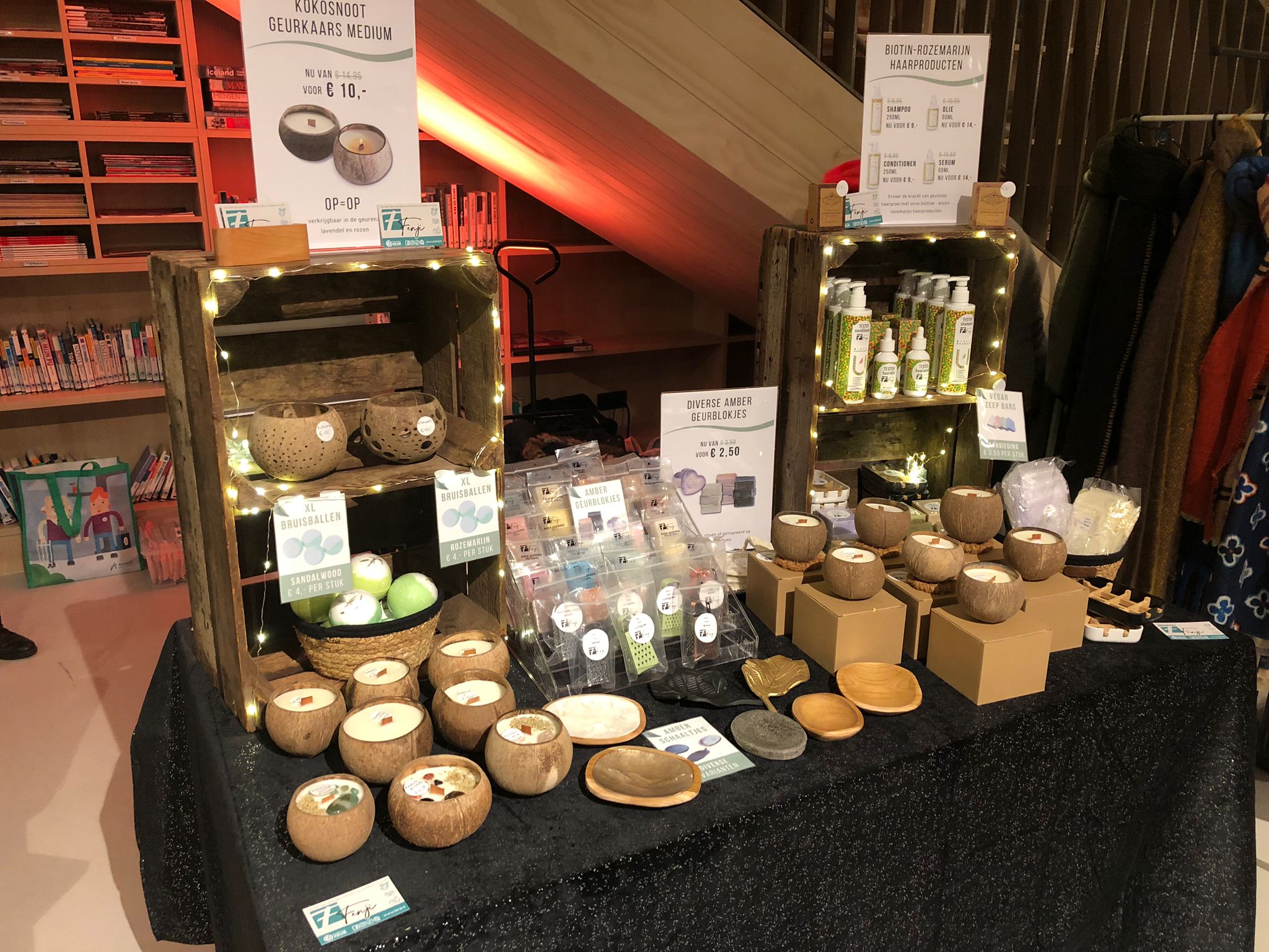 Diverse kokosnoot geurkaarsen en kokosnoot waxinelichthouders zeer scherp geprijsd