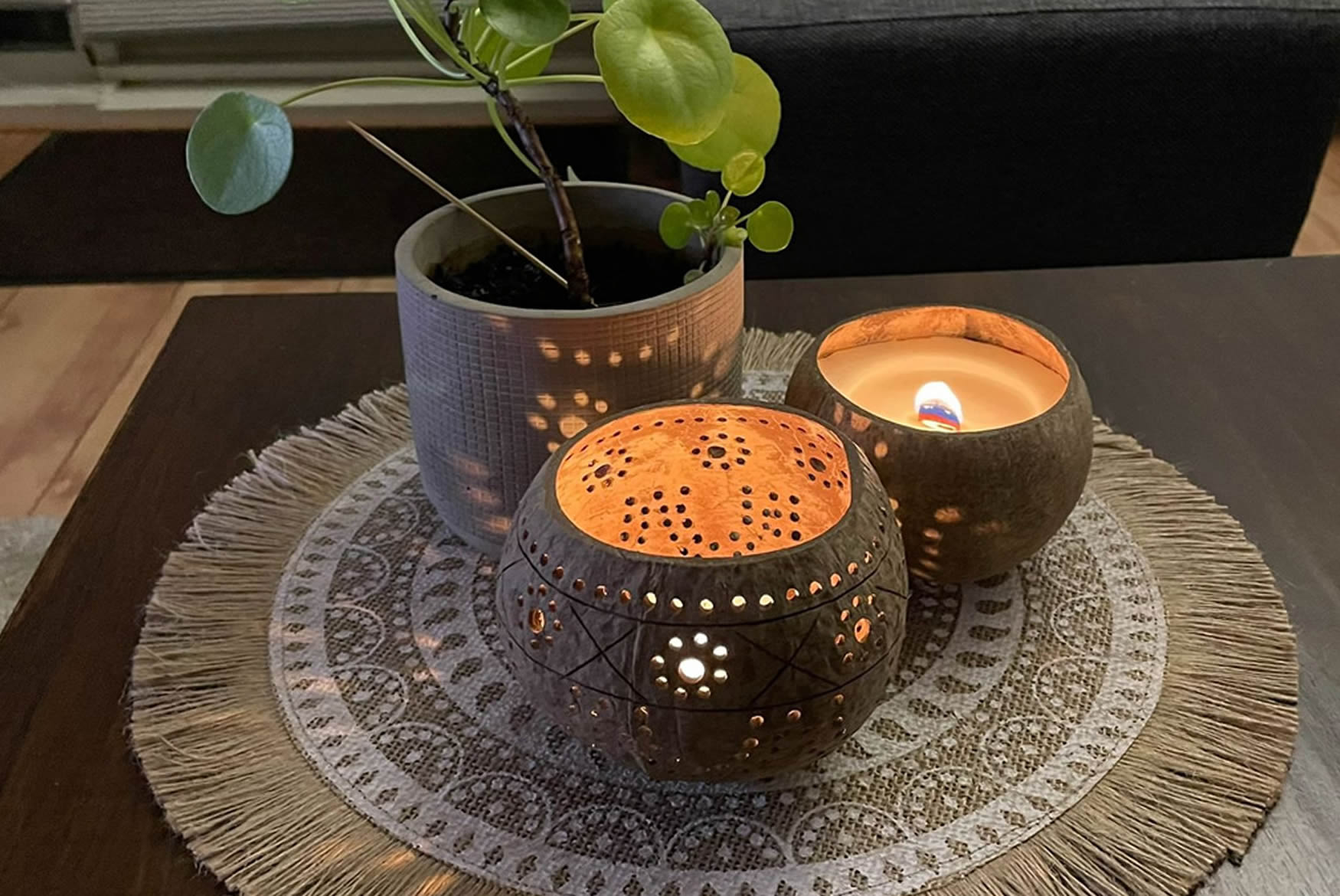 Duurzame kokosnoot waxinelicht (kaars)houders, natuurlijk en uniek Breng een vleugje exotische charme...