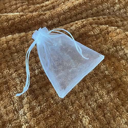Maak je geschenken en decoraties compleet met onze stijlvolle Organza zakjes. Deze verfijnde zakjes zijn perfect voor het verpakken van onze amberblokjes, kleine cadeaus, favorieten of decoratieve items en voegen een vleugje elegantie toe aan elke gelegenheid.