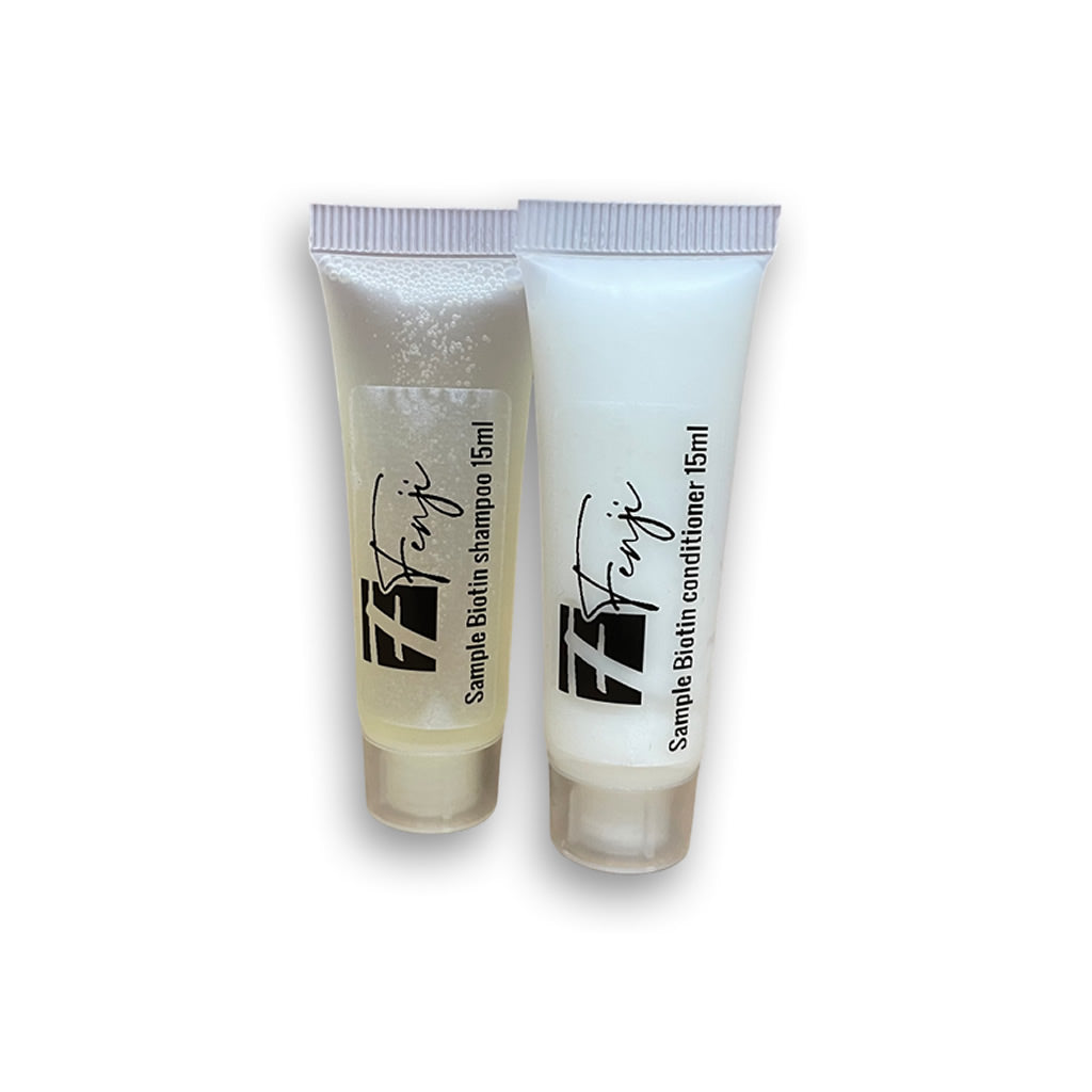 Versterk en revitaliseer je haar met onze biotine - biotin - rozemarijn shampoo en conditioner, speciaal ontwikkeld voor een gezonde haargroei en optimale verzorging. Deze luxe shampoo en conditioner zijn een perfecte aanvulling op je haarverzorgingsroutine. Test zeker eens onze samples!